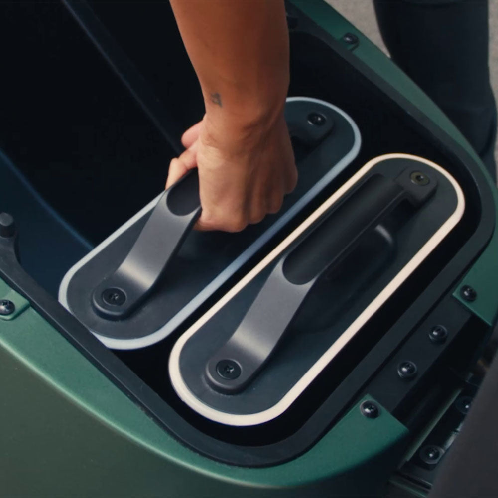 Genügend Platz für bis zu zwei Akkus, 2 Helme und deine persönlichen Sachen
